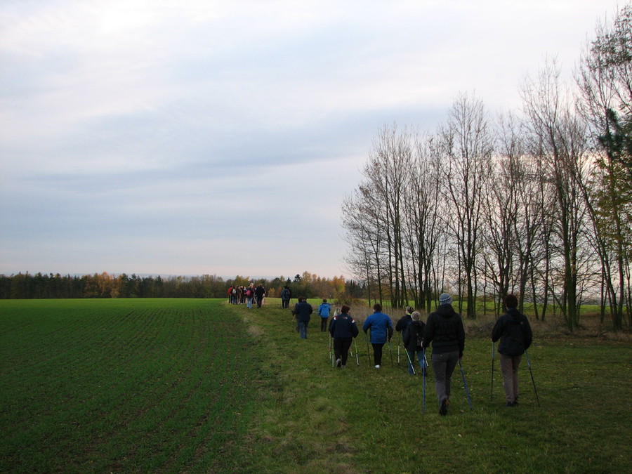 Ve čtvrtek 8. listopadu jsme poprvé vyrazili po nově značené turistické trase Klubem českých turistů na tří kilomentrovou podzimní vycházku ve stylu Nordic Walking. Hole zapůjčila a techniku vysvětlila lektorka severské chůze Lenka Sehnalová. Jejímu odbornému výkladu naslouchalo téměř 40 účastníků. Mimo jiné zdůraznila, že: „Ruce při odrazu nordicwalkingovými hůlkami odlehčují až třicet procent váhy těla, pomáhají srdeční pumpě, podporují rovnoměrný krevní oběh a brání vzniku otoků. Při běžné chůzi se totiž krev hromadí v nohou. Při severské chůzi pracuje devadesát procent všech svalů, což je výhoda, kterou jiné sportovní aktivity nemají." Počasí nám přálo, pobyt na čerstvém vzduchu prospěl a zpět jsme se vrátili všichni s úsměvem na tváři. A protože je ideální vyrazit na procházku s holemi alespoň dvakrát týdně, tak tato první lekce nebyla jistě poslední a již brzy připravujeme další.